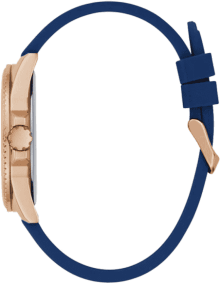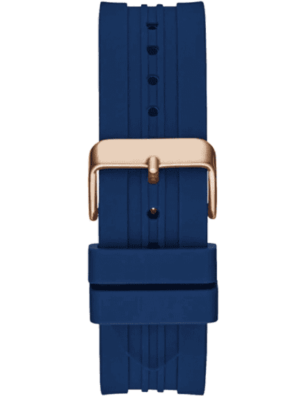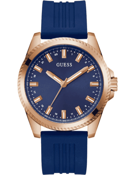 The richness of blue and the allure of gold blended to form this analog men’s watch from Guess.